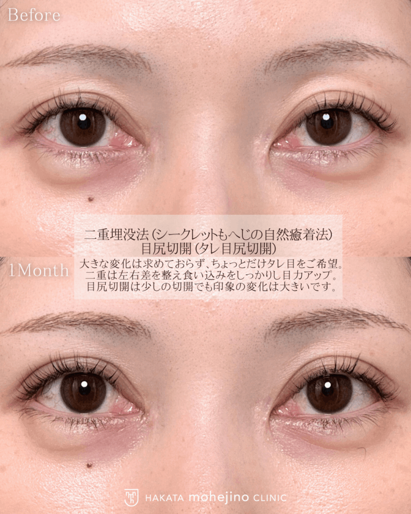 シークレットもへじの自然癒着法+目尻切開(タレ目尻切開)