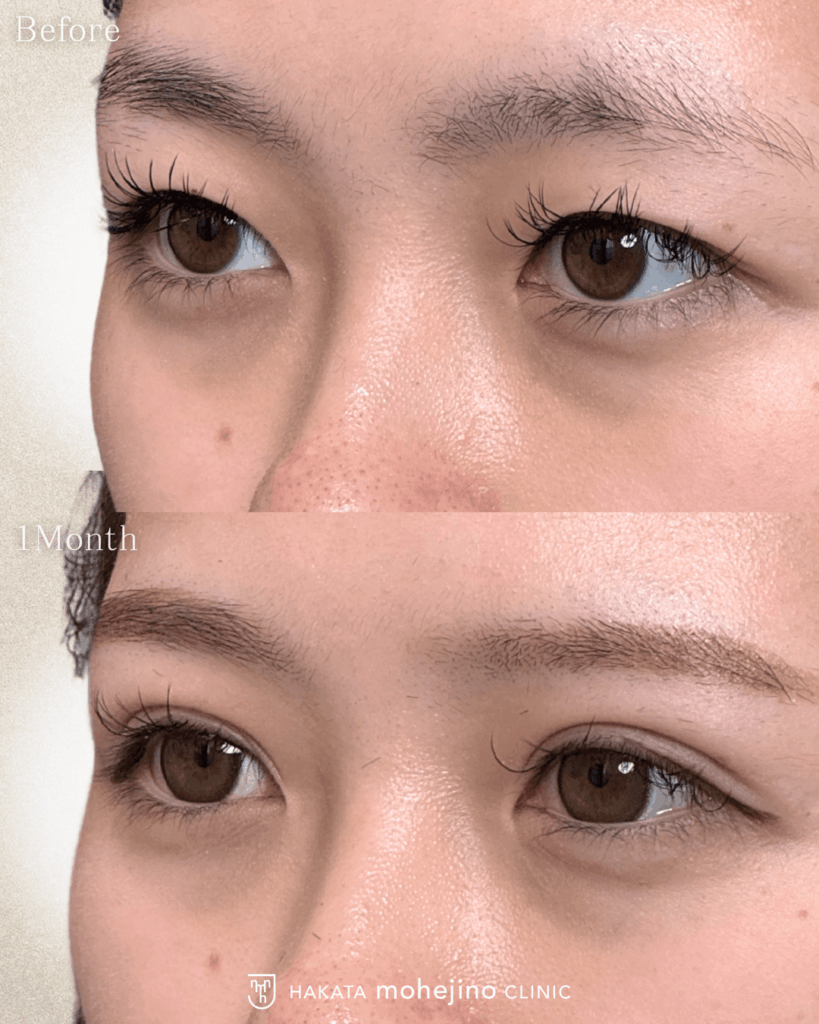| 施術の説明 | まぶたを糸で縫合し、二重のラインを作成する手術です。 術後一ヶ月の自然癒着法の症例です。 「幅がものすごくいい感じ!」ととても喜んでいただけました! 二重整形 #二重埋没法 #自然癒着法 |