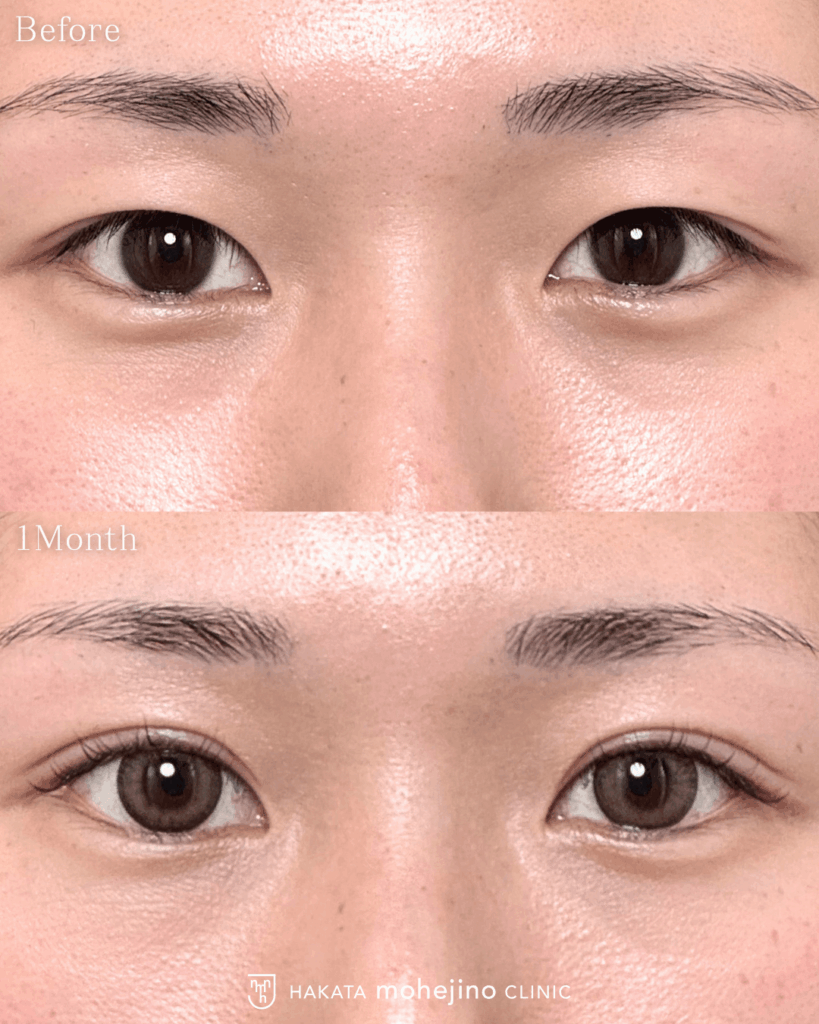 腫れぼったいまぶたには上まぶたの脂肪取りが適している場合があります。切らない上まぶたの脂肪取りは小切開でまぶたの脂肪取りを行います。二重切開法を行う場合は余分な眼窩脂肪を必要に応じて順当に切除しています。